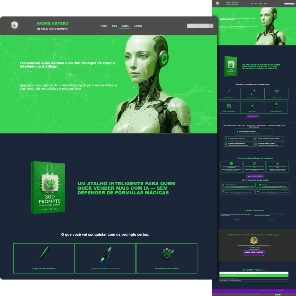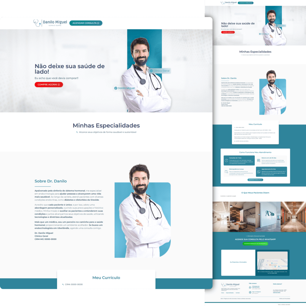 Design direto, interface limpa e elementos visuais que reforçam autoridade, urgência e confiança — tudo pensado para guiar o visitante até a ação.