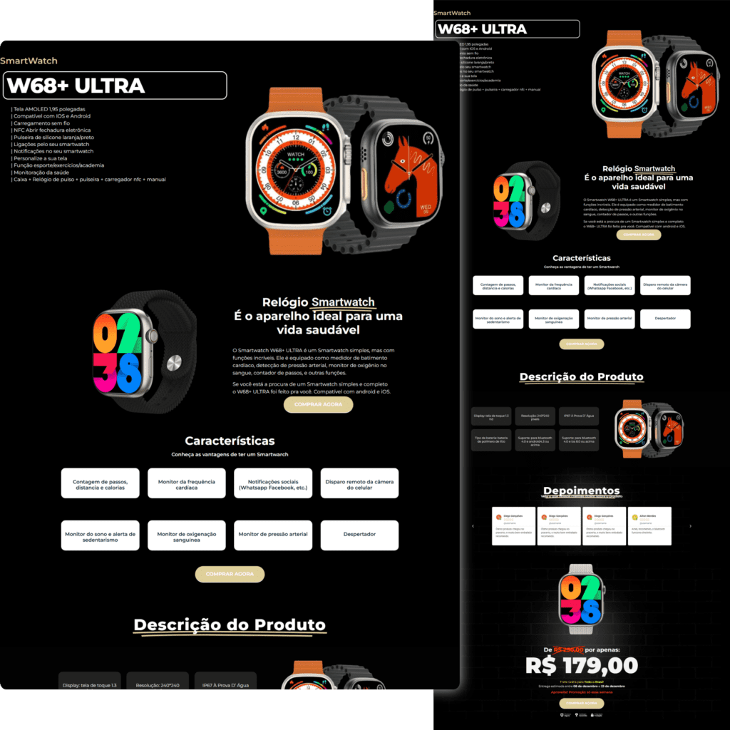 Landing page para produto físico com foco em vendas rápidas e apelo visual.
