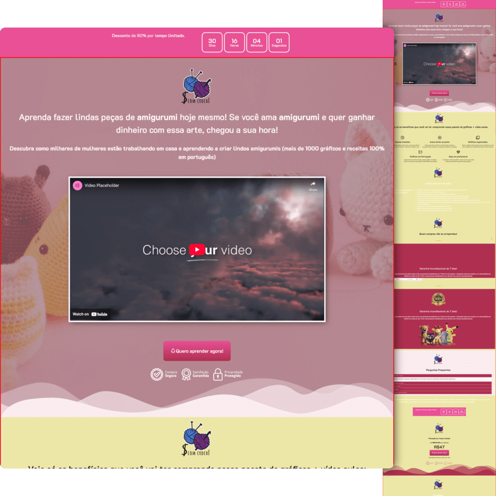 Landing page desenvolvida para lançamento de infoproduto no nicho de marketing digital.